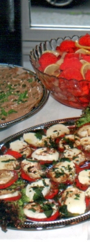 Spaghetti mit Garnelen, frischen Tomaten, Kapern, Knoblauch und Oliven in scharfer Tomatensauce, dazu Salat